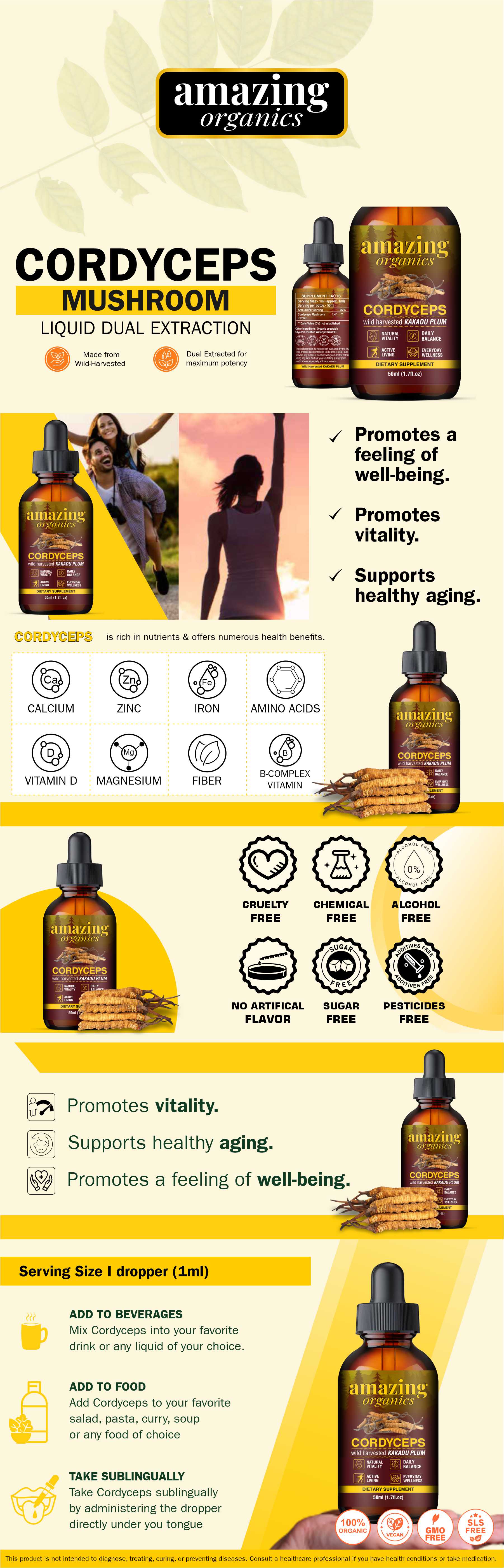 Cordyceps mushroom, purified distilled water, vegetable Glycerin.